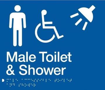 Male Toilet and Shower Braille Sign – Blue/Silver Features:
