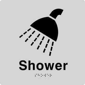 Shower Braille Sign – Blue/Silver Features: