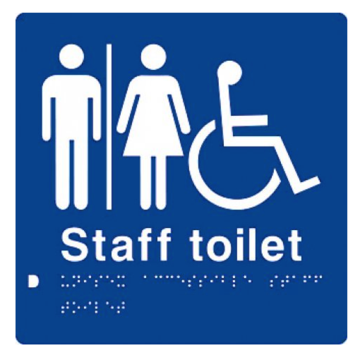 Staff Toilet Braille Sign – Blue/Silver Features